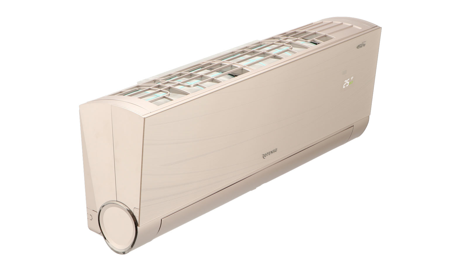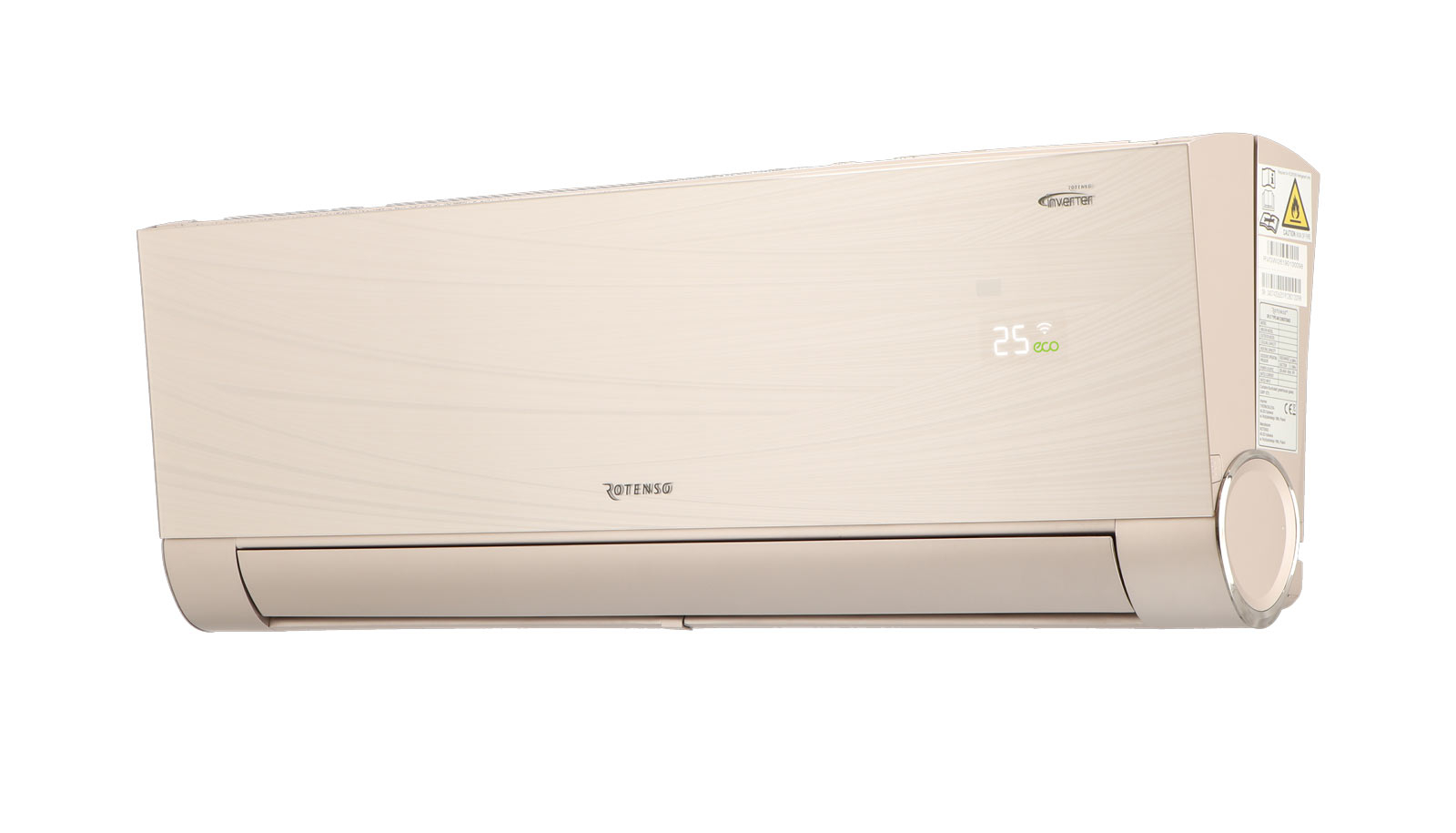 Klimatyzator Rotenso® Versu Gold jest dedykowany klientom ceniącym ekskluzywny design. Panel frontowy w kolorze szampana podkreśla prestiż urządzenia i znakomicie komponuje się z nowoczesnymi wnętrzami.