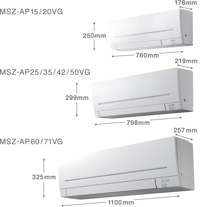 Zestaw klimatyzacji ściennej serii AP, renomowanego japońskiego producenta Mitsubishi Electric. Typoszereg urządzeń o wydajności od 2,0 kW do 7,1 kW.
