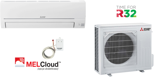 Zestaw klimatyzacji ściennej serii HR, renomowanego japońskiego producenta Mitsubishi Electric. Typoszereg urządzeń o wydajności od 2,5 kW do 7,1 kW.
