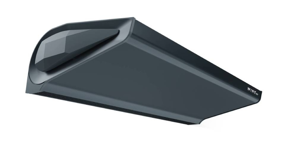 Kurtyna powietrza WING o szerokości 100cm, 150cm lub 200cm. Występująca w wariantach z nagrzewnicą wodną lub elektryczną oraz bez nagrzewnicy. Dostępna kolorystyka: biała (RAL9016) oraz szara (RAL7016).