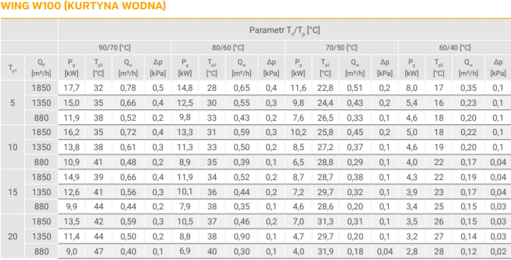 Kurtyna powietrza WING o szerokości 100cm, 150cm lub 200cm. Występująca w wariantach z nagrzewnicą wodną lub elektryczną oraz bez nagrzewnicy. Dostępna kolorystyka: biała (RAL9016) oraz szara (RAL7016).